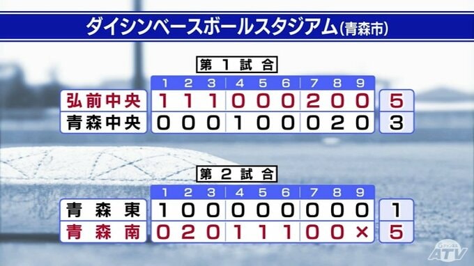 このほかの試合結果です。青森市のダイシンベースボールスタジアムでは青森中央と弘前中央の一戦は、初回から小刻みに得点した弘前中央が初戦突破。青森南と青森東の青森勢対決は青森南に軍配が上がっています。