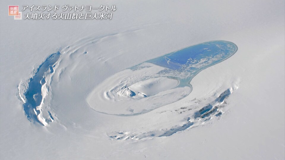 番組でも撮影したのですが、広大な氷河に所々、大きなへこみや穴が空いています。これは地熱によって氷河が溶けて陥没したもので、すぐ下に火山があることを示しています。そこから噴火が起きると、火山からマグマが噴き出し、白銀の世界に赤い火柱が立つ・・・という世にも稀な景色が生じます。