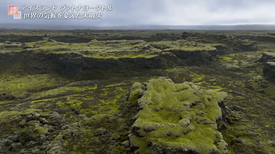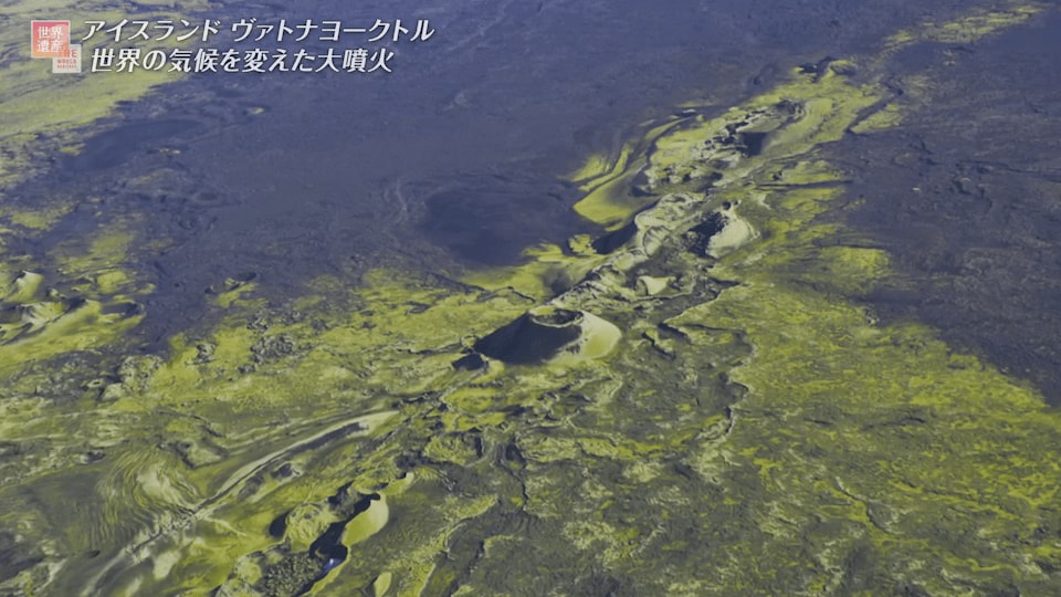 ヴァトナヨークトルの火山列の中で特に大きいのがラカギガル火山列で、25キロにわたり130もの火口が直線に並んでいます。ラカギガル火山列は1783年の噴火で出来たのですが、この噴火はアイスランドの観測史上最大規模のもので、世界の気候をも変えたといわれます。