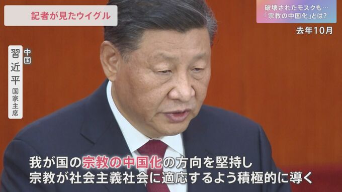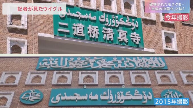 残された数少ないモスクも、様変わりしていました。2015年に撮影されたウルムチ市内の様子には、当時、ウイグル文字で書かれていた看板に、2023年には漢字表記が追加されています。別のモスクの壁には「愛国愛教」=「国と宗教を愛せ」の文字。こうした流れをつくっているのは、2015年に中国政府が打ち出した「宗教の中国化」です。