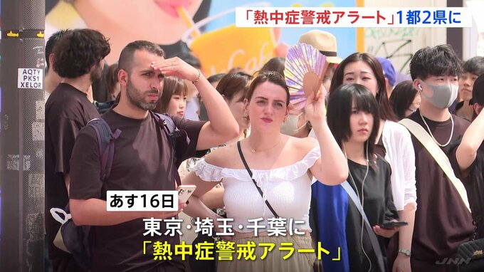 関東地方はあす、危険な暑さとなる見込みです。環境省と気象庁は東京と埼玉、千葉の1都2県に「熱中症警戒アラート」を発表し、厳重な警戒を呼びかけています。環境省と気象庁はあす16日、「暑さ指数」が33以上とな…