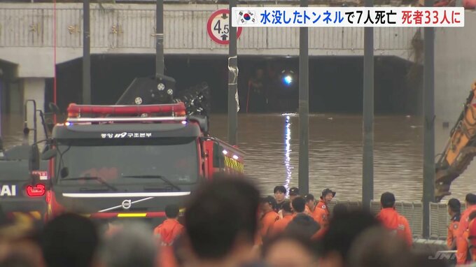 記録的な大雨が続く韓国では、水没した地下トンネルで7人の死亡が新たに確認され、大雨での死者が30人を超えました。韓国では13日からきょう未明までに中部や南部を中心に多いところで570ミリ近くの雨が降り、きょ…