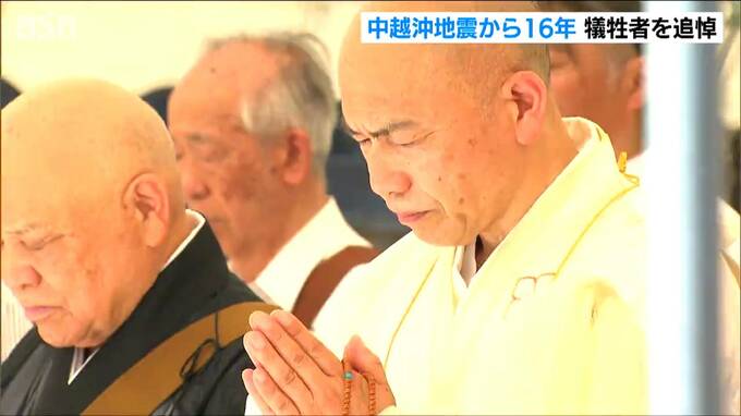 15人が犠牲になった中越沖地震から16日で16年。柏崎市では、犠牲者を追悼する式典が開かれました。被害が大きかった柏崎市では犠牲者の供養と世界平和の祈念のため地元の寺の僧侶らがお経を唱えながら街中を歩き…