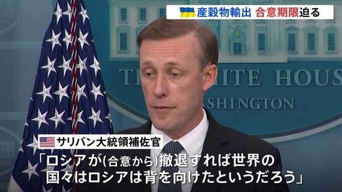 17日に期限を迎えるウクライナ産穀物の輸出に関する合意について、アメリカ政府高官はロシアが延長に合意しなければ「とてつもなく大きな外交的損失をもたらす」とけん制しました。ウクライナ産穀物の黒海を通じた…
