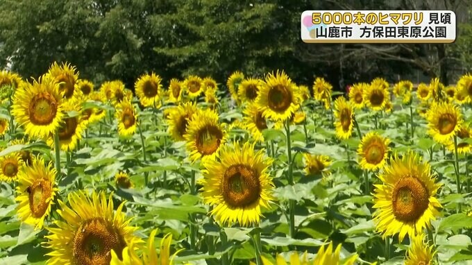 山鹿市にある国指定の史跡で5000本のヒマワリが見頃を迎えています。夏空に映える色鮮やかなヒマワリ。ここ山鹿市の方保田東原(かとうだひがしばる)遺跡公園では約5000本の『ヒマワリ』が見頃を迎えています。こ…