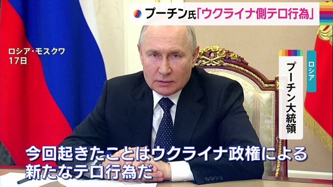 ロシアのプーチン大統領は、一方的に併合したウクライナ南部クリミアとロシア本土を結ぶ橋が損傷したことをめぐり、「ウクライナ側のテロ行為だ」と主張し、報復攻撃を示唆しました。ロシア プーチン大統領「今回…