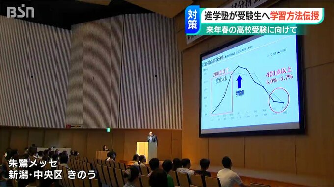 来年春の高校入試に向けて新潟県内の進学塾が試験問題の傾向や合格するための学習方法などを受験生らに解説しました。