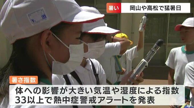 きょう(18日)も全国で厳しい暑さとなりました。岡山・香川の各地でも猛暑日を記録するなか、香川県丸亀市の小学校では熱中症警戒アラートの発表基準で使われる「暑さ指数」を測定する授業が行われました。