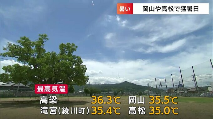 真夏の太陽が照りつけた瀬戸内地方。岡山県内では最高気温が高梁で36.3度、岡山で35.5度となったほか、香川県内でも綾川町滝宮で35.4度を記録する猛烈な暑さとなりました。