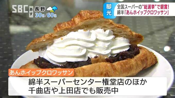 「長野市の綿半スーパーセンター権堂店に、全国のスーパーの中から銀賞に選ばれたスイーツがあるんです。それがこちら!『あんホイップクロワッサン』です」