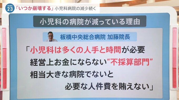 「小児科は多くの人手と時間が必要。経営上、お金にならない“不採算部門”。相当大きな病院でないと必要な人件費を賄えない」