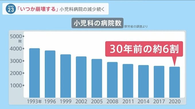 厚労省の調査によると、小児科の病院は減り続け、現在は30年前の6割ほどしかありません。