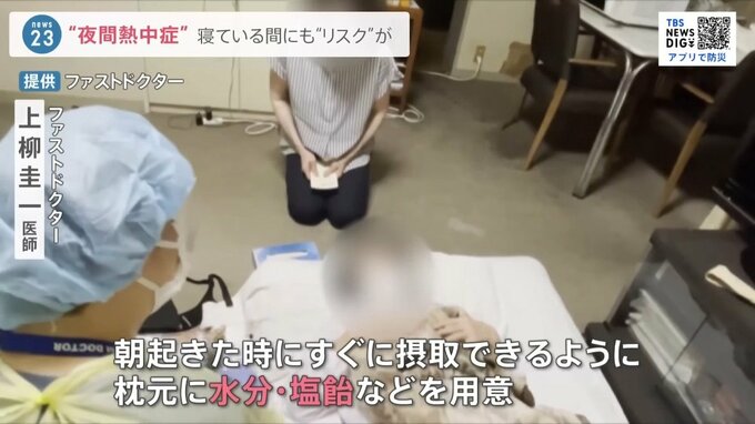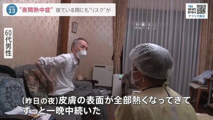 「夜間の熱中症の怖いところは、症状に気づきにくい。寝ている間に(症状が)進行してしまって、気づいた時には重い症状が出ている方もいる。寝る30分くらい前に、水分補給をしたり、朝起きた時にすぐに摂取できるように、枕元に水分・塩飴などを用意いただくのがいい。何より夜間の空調の使用は継続していただくことが大事」