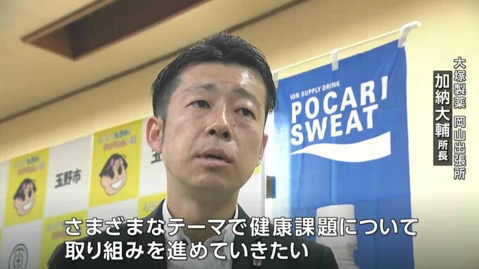 (大塚製薬岡山出張所 加納大輔所長)「自らの言葉でアウトプットしていただいて、熱中症だけに限らず、様々なテーマで健康課題について取組を進めて行きたいと考えています」