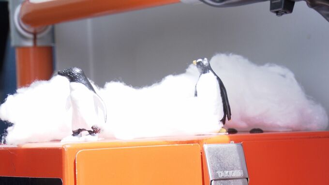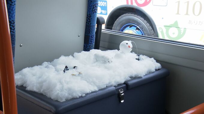 雪だるまやペンギンなど、「涼しい」を通り越して寒そうな装飾が施されている車両もあります。
