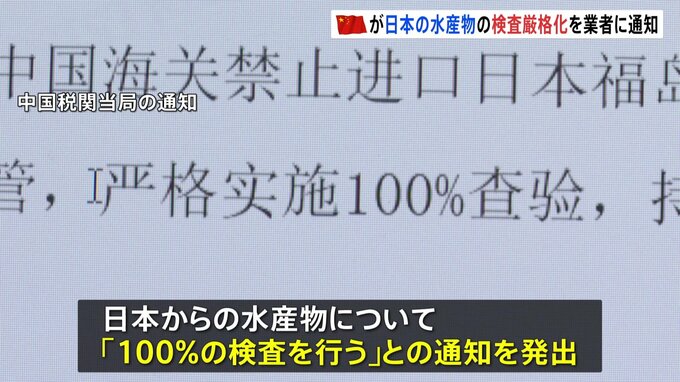 日本からの水産物について、中国各地の税関当局が放射性物質などに関する検査を厳格化する方針を業者に示していることがわかりました。福島第一原発の処理水を海に放出する計画を受けて、中国の税関当局は7日、日…