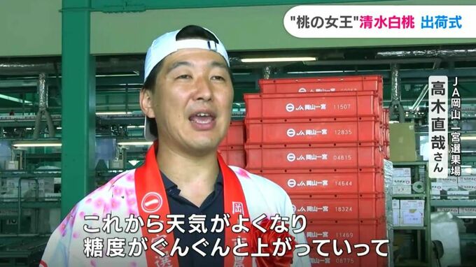 (JA岡山 一宮選果場果樹部会青年部 高木直哉部長)「これからどんどん天気が良くなっていって、糖度がぐんぐんと上がっていって美味しい桃がお届けできると思いますので、味わって食べてください」