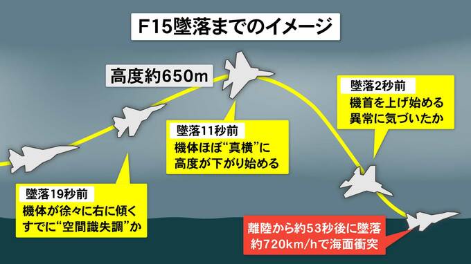 事故機は当日、夜間の飛行訓練のため、2機編隊の2番機として、午後5時29分に小松基地を離陸。すぐに雲の中に入って右に旋回する中で、機体が過度に傾いたとみられます。