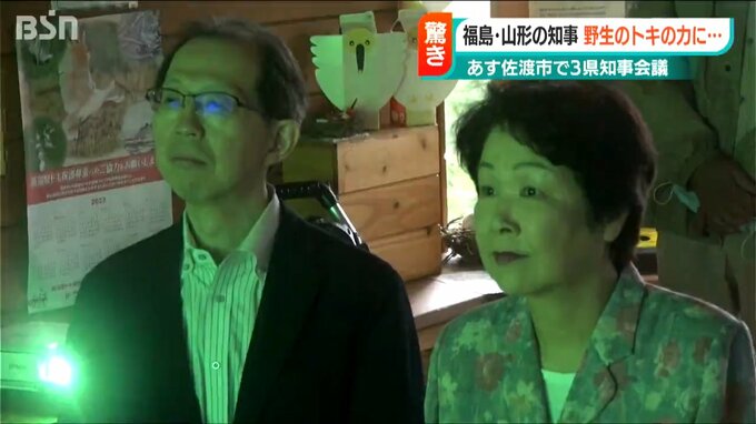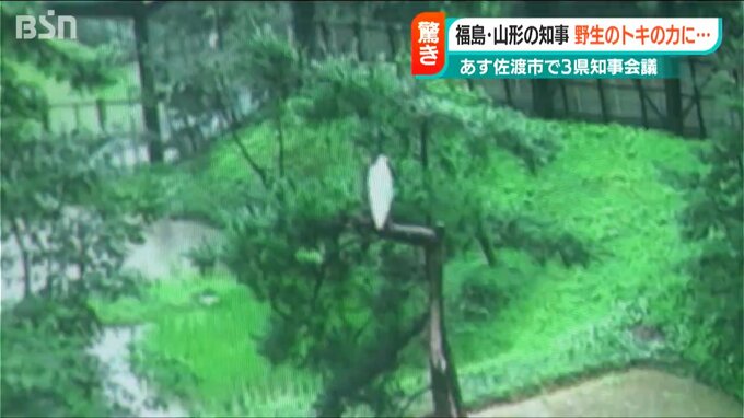 さらに、佐渡で放鳥されたトキが山形県の米沢・山形・鶴岡・庄内や、福島県の福島市でも目撃情報が確認されていると聞いて、皆一様に驚いた表情を見せるとともに、福島県の内堀雅雄知事や山形県の吉村美栄子知事からは、トキのモニタリング方法や、人と共存する上での課題などの質問が出されました。