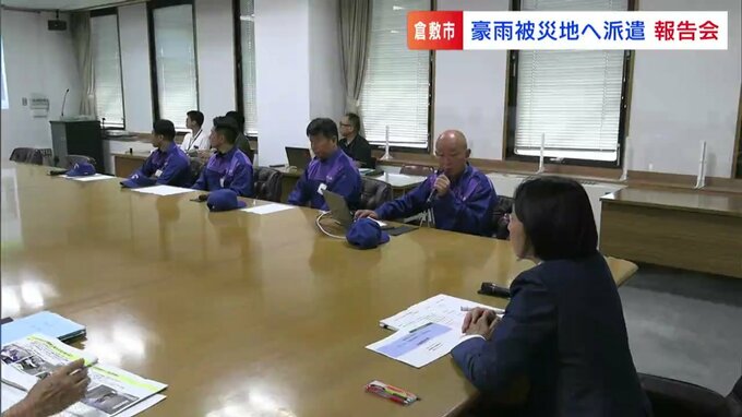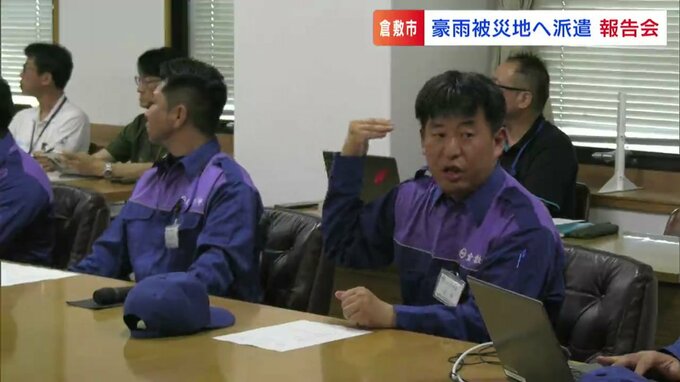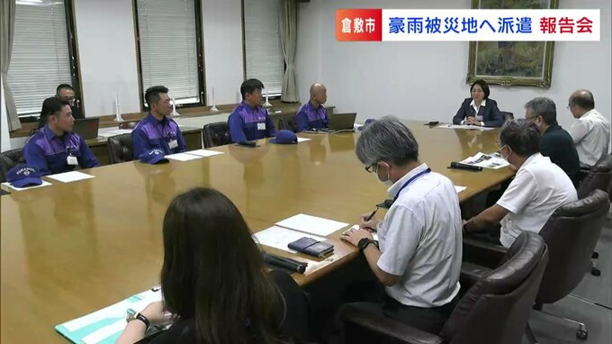 豪雨被害を受けた福岡県久留米市へ支援物資を届けた岡山県の倉敷市が報告会を開き、あす(20日)から、社会福祉協議会の職員が支援に向かうことも発表されました。