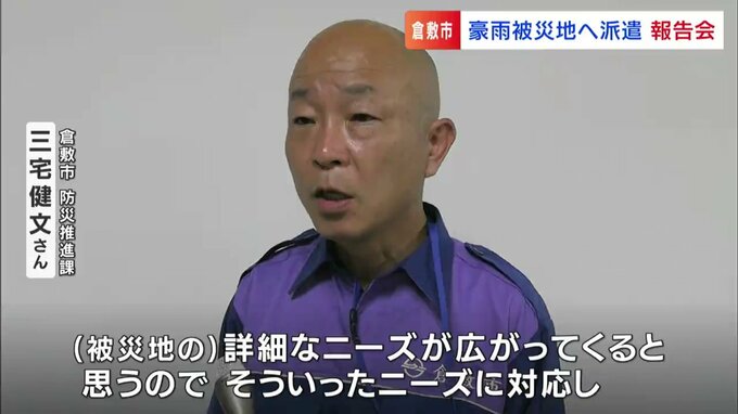 (倉敷市防災推進課 三宅健文さん)「(被災地の)詳細なニーズが広がってくると思いますので、そういったようなニーズにも対応できるように。また、暑い中ですので、体調管理にも十分気をつけて行ってきていただきたいと」