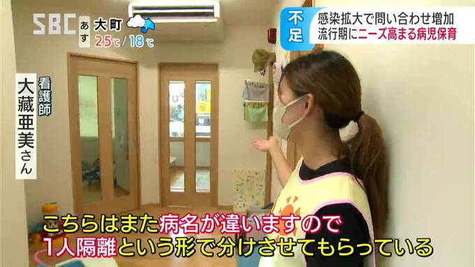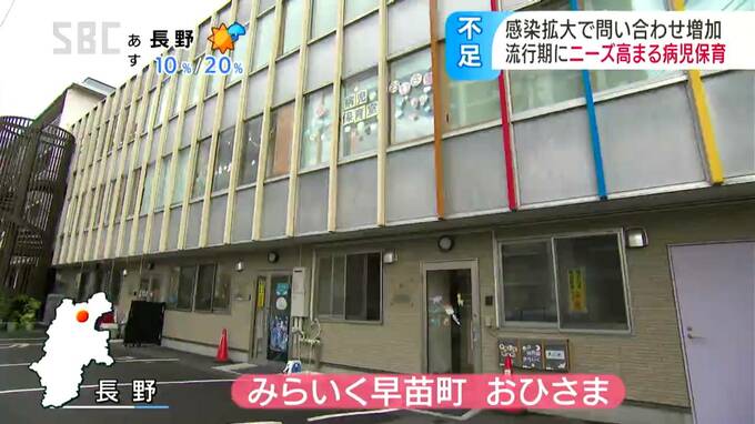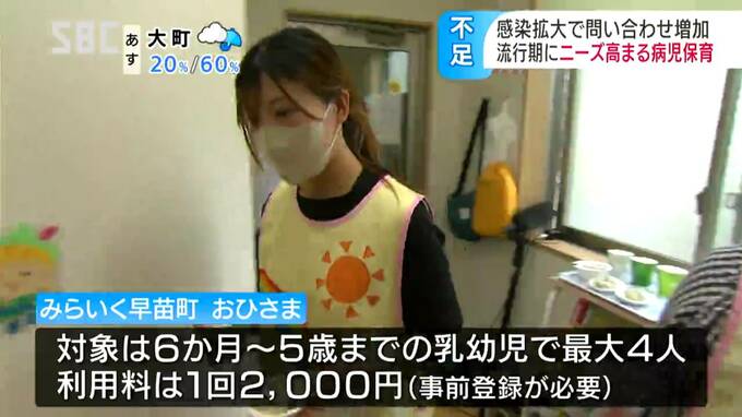 保育園によりますと、回復途中の「病後児」を預かる施設に比べて、感染直後の「病児」を受け入れられる施設はまだ少なく、感染症が流行る時期には需要に応えられない状況だということです。
