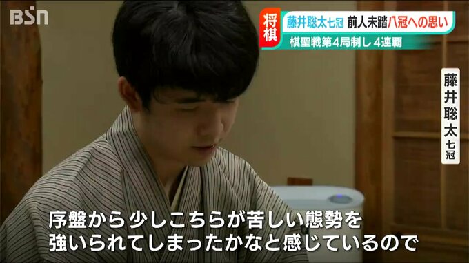 20歳最後の日に4連覇を達成した藤井聡太七冠が、前人未踏の『八冠』への思いを対局終了後に語りました。