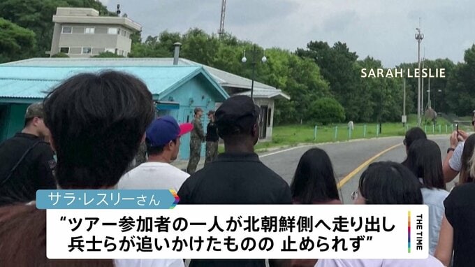 アメリカ軍所属の兵士が韓国と北朝鮮の軍事境界線を越え北朝鮮側に入った問題で、兵士と同じ見学ツアーに参加していた女性が当時の状況を語りました。ツアー参加者 サラ・レスリーさん「黒い服を着た男が北朝鮮の…