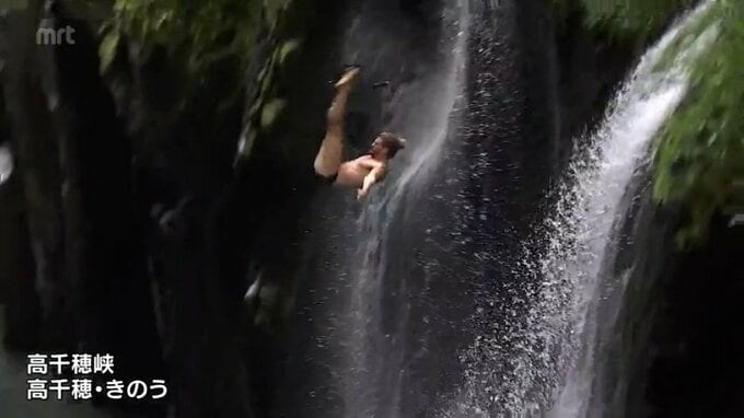 来月、宮崎県高千穂町の高千穂峡でハイダイビングの世界選手権が開かれるのを前に、19日、現地でデモンストレーションが行われました。来月、高千穂峡で開かれるハイダイビングの世界選手権、「レッドブルクリフダ…