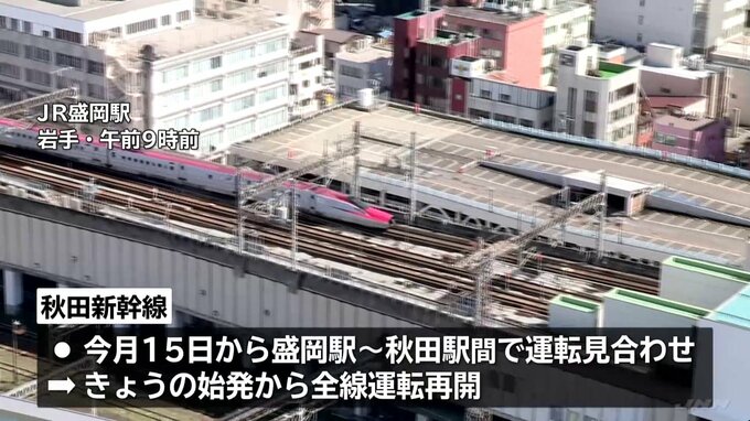 秋田県での記録的な大雨の影響で、盛岡駅と秋田駅の間で運転見合わせが続いていた秋田新幹線はきょう、5日ぶりに全線で運転が再開されました。今月15日から運転見合わせが続いていた秋田新幹線は、きのう行われた…