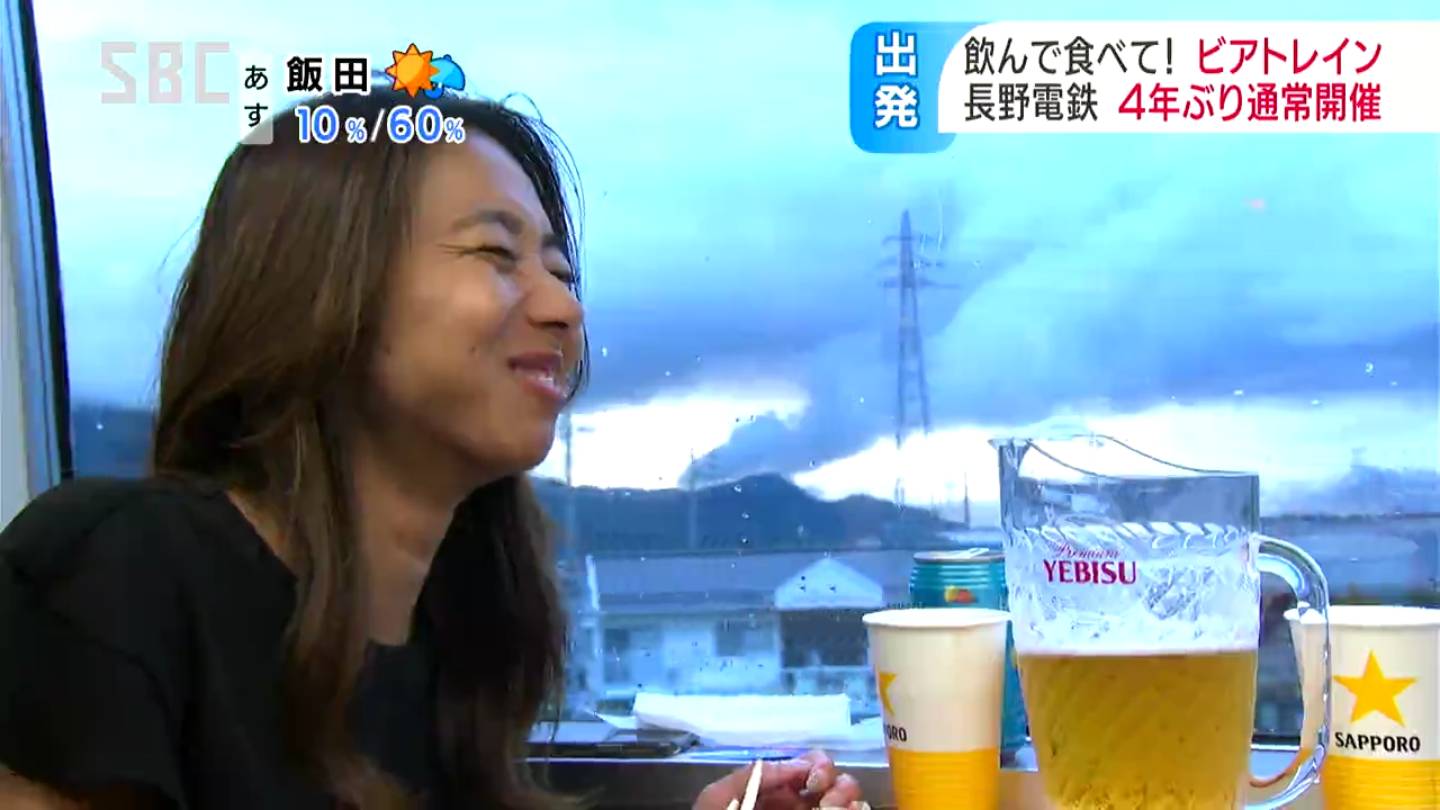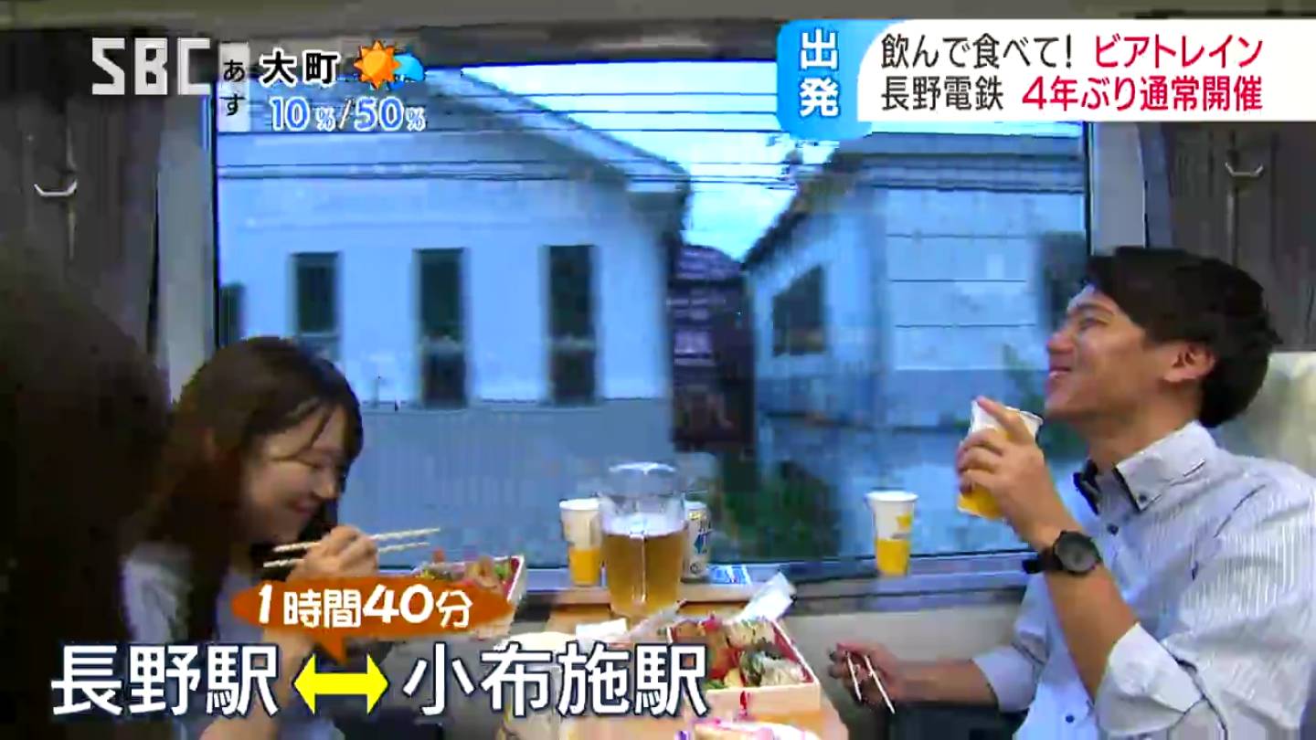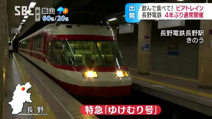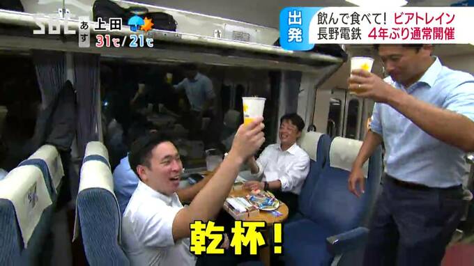 長野電鉄に乗りながら飲食を楽しんでもらう夏の恒例「ながでんビアトレイン」がスタートしました。