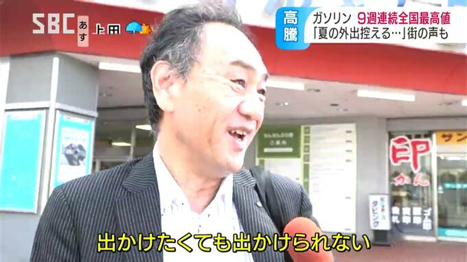 「いやー高すぎますよね。家族で車で出かけるのも考えちゃいますよね。出かけたくても出かけられない」                                                                                                                                                「なきゃ動けない、生活が成り立たない」                                      「昔の倍ですよね90いくらの時に乗っていた気がする」                           「物価も上がっちゃってどこも行けないです」