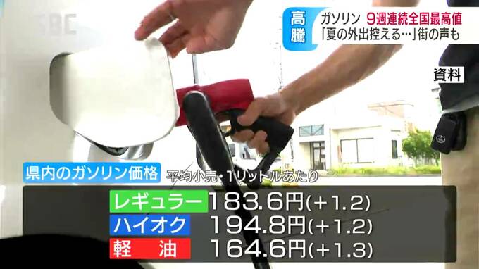 県内のレギュラーガソリンの価格は9週連続で全国最高値を記録しました。