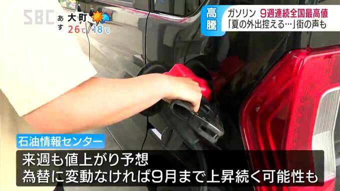 石油情報センターでは、来週も値上がりを予想していて、為替レートに変動がなければ政府の補助金がなくなる9月まで上がり続ける可能性があるということです。