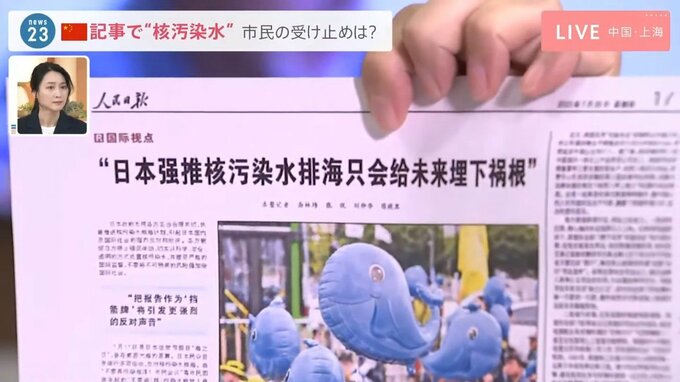 こちらは中国共産党系の機関紙「人民日報」の7月21日の記事なんですが、“処理水”ではなく“核汚染水”という言葉が使われていて、記事の中では、日本や韓国でも反対運動が起きているということや、具体的に日本の地方新聞社の名前を挙げて社説に、反対意見が載っているというようなことが書かれています。