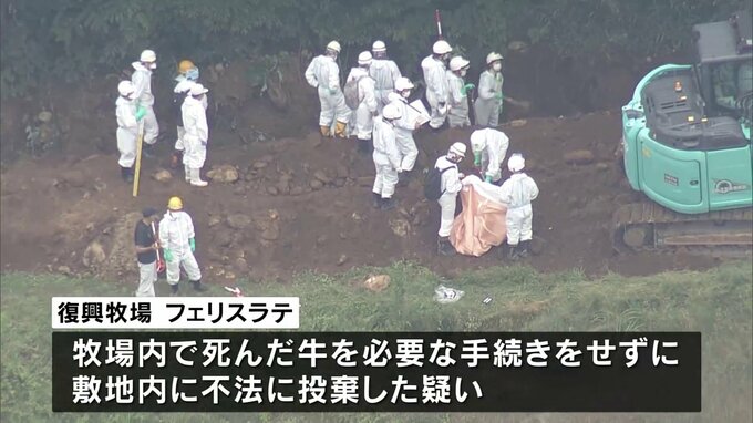 福島復興のシンボルの一つになっている牧場に、死んだ牛を不法に投棄した疑いで警察が強制捜査に入ったことを受け、この牧場の代表の男性がきょう取材に応じ、200頭ほどの子牛を埋めていたことを明らかにしました…