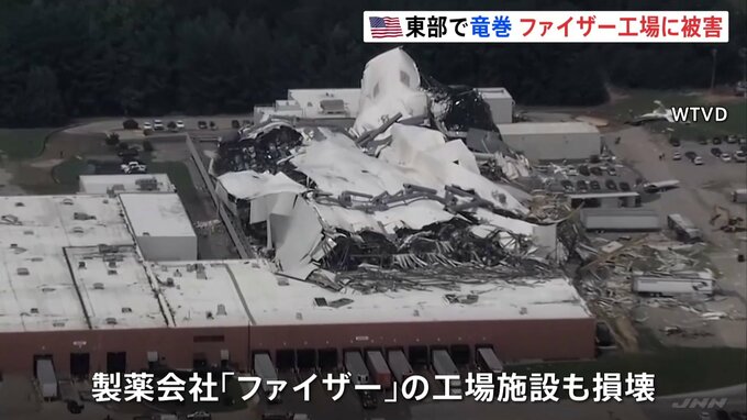 屋根が吹き飛ばされ、むき出しになった家。アメリカ東部ノースカロライナ州で19日、巨大な竜巻が発生しました。竜巻で製薬会社「ファイザー」の工場施設も損壊。現地メディアによると、この工場では日本向け製品の…