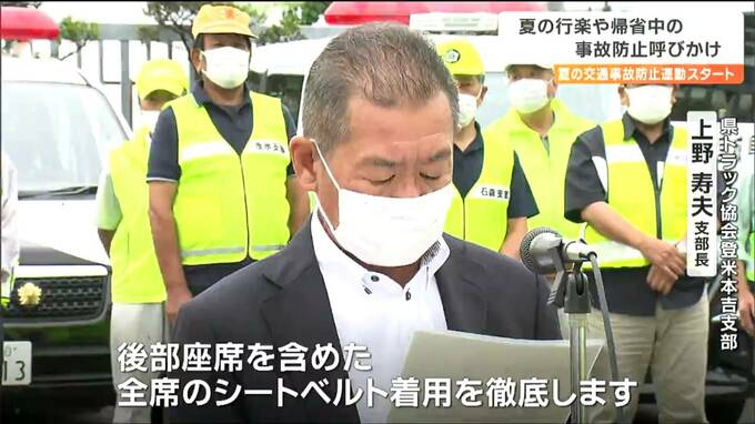 参加者はドライバーに対し交通ルールを守り、ゆとりを持って安全運転に努めるよう呼びかけました。夏の交通事故防止運動は8月20日まで行われます。
