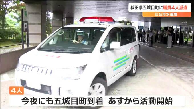 記録的な大雨に見舞われた秋田県五城目町で水道施設の復旧支援をするため、仙台市水道局は21日、職員4人を派遣しました。秋田県五城目町に向けて出発したのは、仙台市水道局の水道技術職員4人です。4人は、現在も、…
