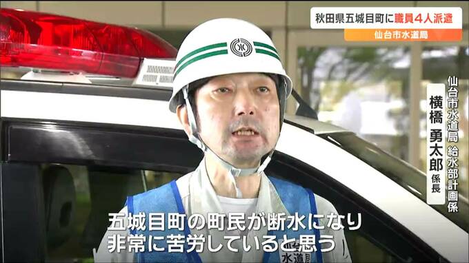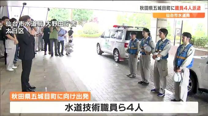 秋田県五城目町に向けて出発したのは、仙台市水道局の水道技術職員4人です。4人は、現在も、3000戸以上で断水している五城目町で給水車両の配置や浸水した浄水場の復旧作業など断水の解消に向けた支援を行います。