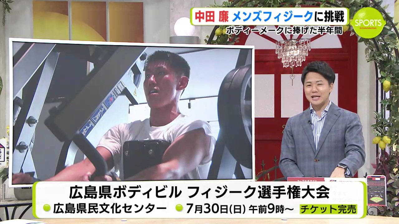 中田廉さんが挑むのは、「広島県ボディビル フィジーク選手権大会 7月30日(日)広島県民文化センター」です。(チケット完売)