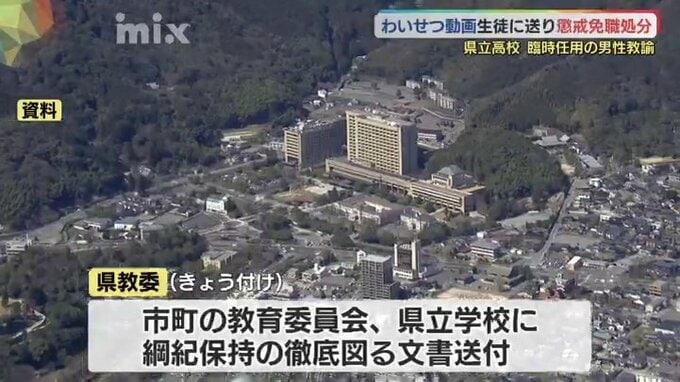 山口県立高校の臨時任用の男性教諭が、知人女性とのわいせつな行為を撮影した動画を男子生徒にSNSで送ったとして、懲戒免職処分となりました。