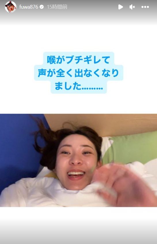 フワちゃんはインスタグラムのストーリーズで「喉がブチギレて声が全く出なくなりました………」と自撮り写真にテキストを添えて明かし、動画では「どのくらい出てないかというとこのぐらい出てない」とのテキストを添えて、かすれた声でおどけている様を映しています。