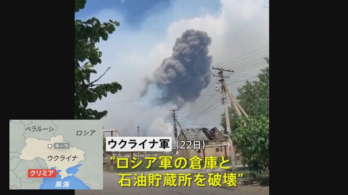 ウクライナ軍はロシアが一方的に併合した南部クリミアで、ロシア軍の倉庫などを破壊したと発表しました。ウクライナ軍は22日、クリミアにあるロシア軍の倉庫と石油貯蔵所を破壊したとして映像を公開しました。現地…