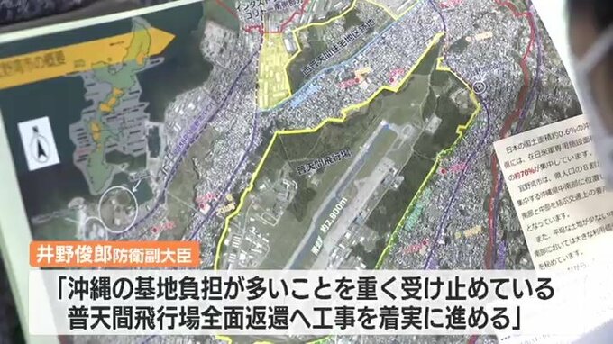 井野俊郎防衛副大臣が「沖縄の基地負担が多いことを政府として重く受け止めている。特に普天間飛行場の全面返還を実現するため辺野古移設に向けた工事を着実に進めている」とあいさつしました。