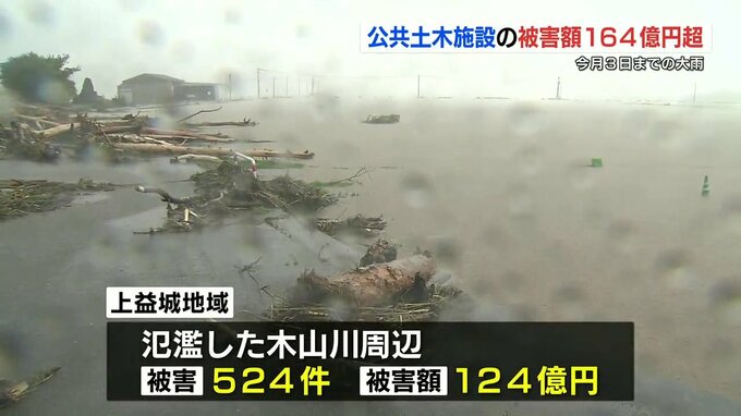 7月3日までの大雨による熊本県内の公共土木施設への被害額が164億円を超えることが明らかになりました。