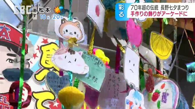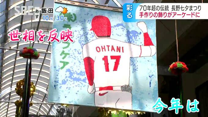 七夕飾りは毎年、その年を象徴する出来事や流行などが反映され、今年はアメリカ大リーグで活躍する大谷翔平選手をモチーフにしたものが目立ちます。