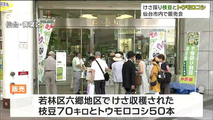 販売会は、8月3日にも仙台駅東西自由通路で行われ市内34の飲食店ではけさ採りの枝豆やトウモロコシを使ったメニューが提供されます。