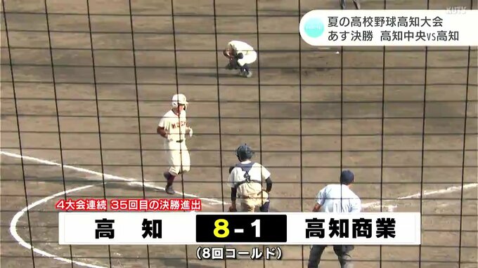その後も攻撃の手を緩めず8回コールドで高知商業を下し、4大会連続35回目の決勝進出を決めました。