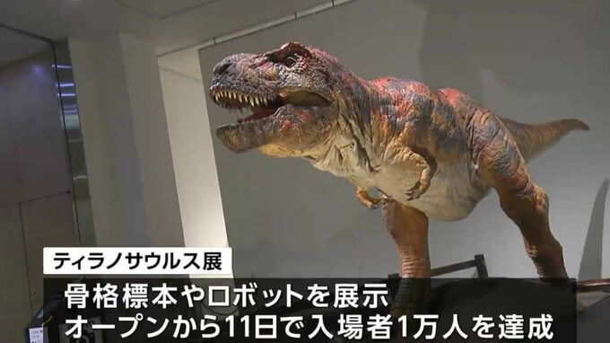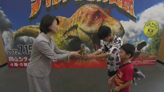 子どもたちに恐竜の迫力を味わってもらおうと岡山市で開かれている「ティラノサウルス展」がきょう(25日)、入場者1万人を達成しました。
